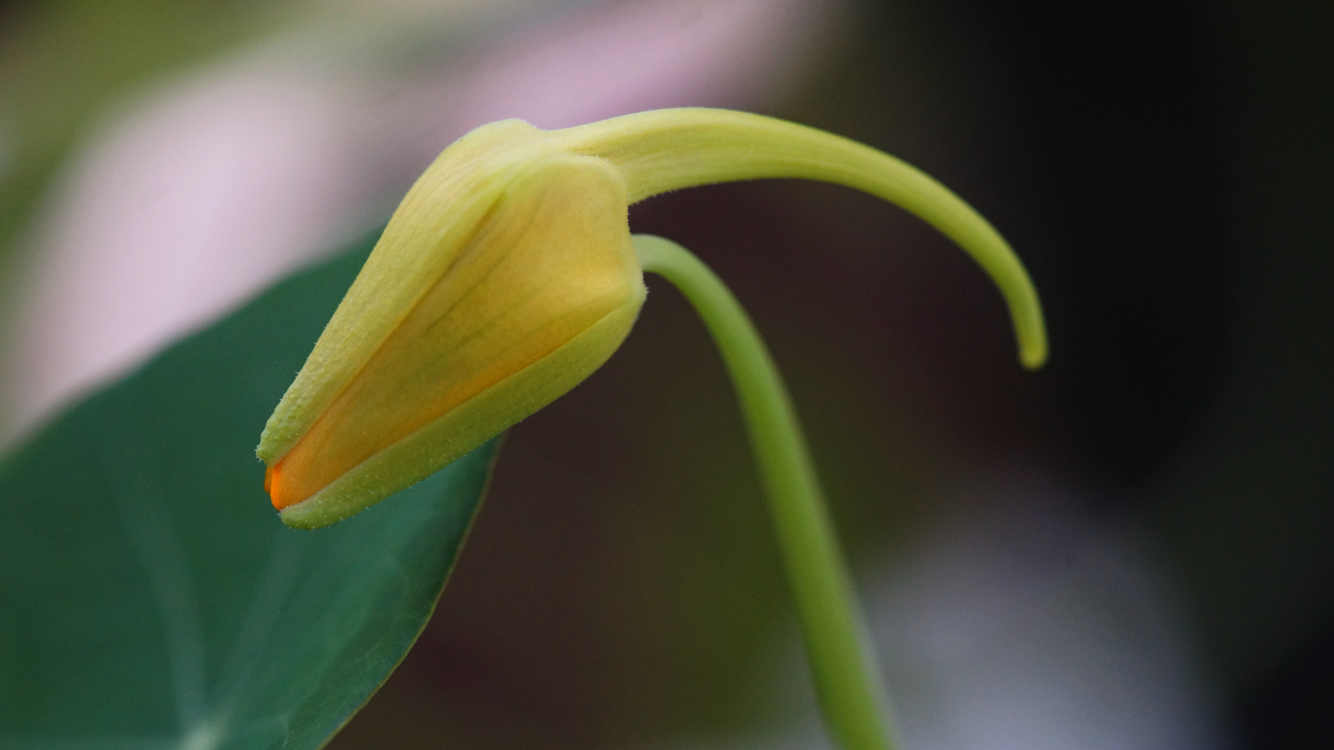 Das Bild oben zeigt die erste Knospe der Kapuzinerkresse-Blüte!