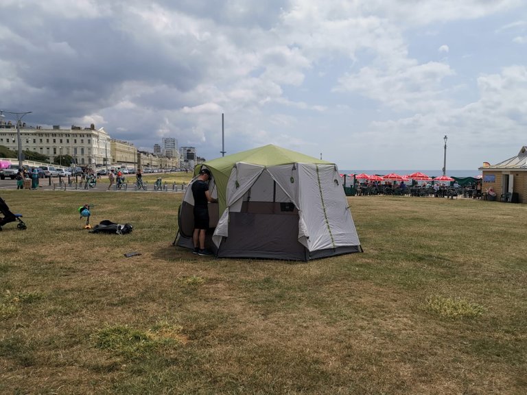 I went into town with my daughter and we were walking around for hours. Meanwhile the grandkids were helping their Grandad put up the tent on the lawn to see it was all there.