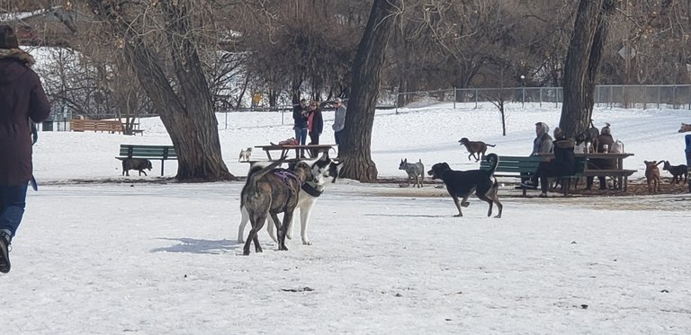 So I got most of these steps swimming. We did get to the pool and even the hot tub which felt great. I feel like a lot of these steps were gotten doing dishes and cooking yesterday. Alaska at the dog park. One of us is cold...