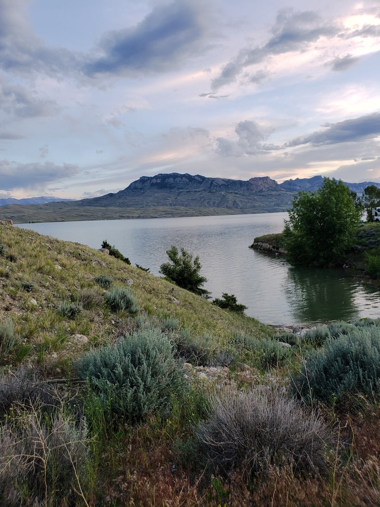 I am sitting next to a very beautiful lake soaking my feet while writing this. I believe this is Cody Wyoming but I could be wrong, I am a bit odd that way.