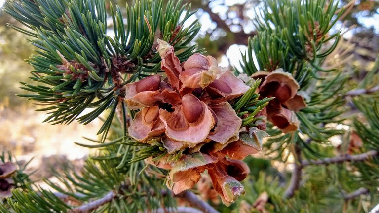 A few days ago we met a local named Paul who lives adjacent to the public property here where we are camped at. He likes to collect "treasures" on the mountain and this is the time of year when he collects pinion nuts. He has been going for the last week or so to collect them then and we tagged along today.