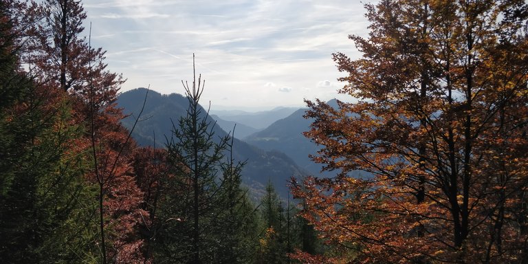 Und beim Herunterwandern hat man, zwischen den Bäumen auch noch einen herzlichen Blick in die Ferne und ins Tal, in welchem man gestartet ist.