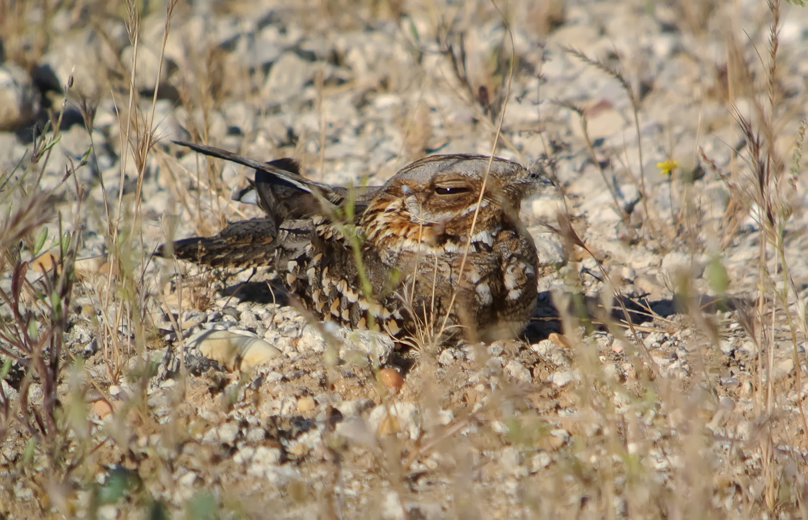 The Chotacabras Cuellirrojo is a summer visitor that returns in the spring to the Iberian Peninsula to raise. It is of crepuscular habits and it is detected in spring by its song and by the courtship of the male that makes a peculiar noise when striking one wing against the other while chasing the female. Once they start to incubate, it is almost impossible to see them, unless we pass near where they rest and take flight. They trust fully in their perfect mimicry to go unnoticed and hold without getting up until it is less than 2 meters from them. At the end of the summer they begin to migrate towards their winter quarters in Africa and it is easier to see them perched on the roads and highways, the habit of standing still in the middle of the roads causes many to be run over. All the photographs, except those of flight that are made with a compact with x24 zoom, were made with the digiscoping technique.