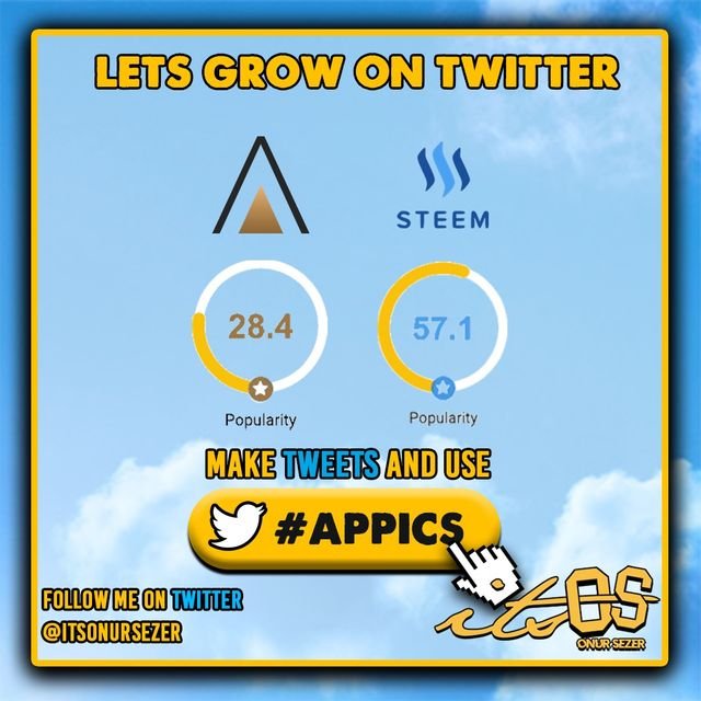 Hey Dear Appics Community, many Steemians are on Twitter and are using their hashtags. At the moment the tag "Steem" has a popularity of 57.1 and we have 28.4. Let's increase our popularity on Twitter together.