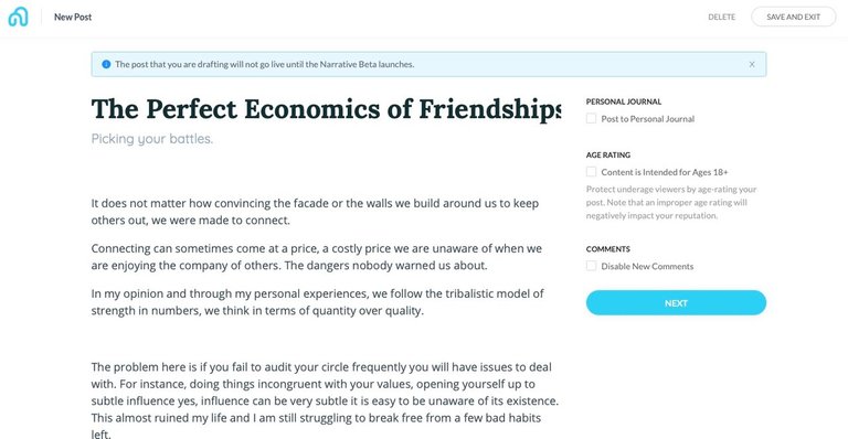 My First Draft saved on Narrative.
