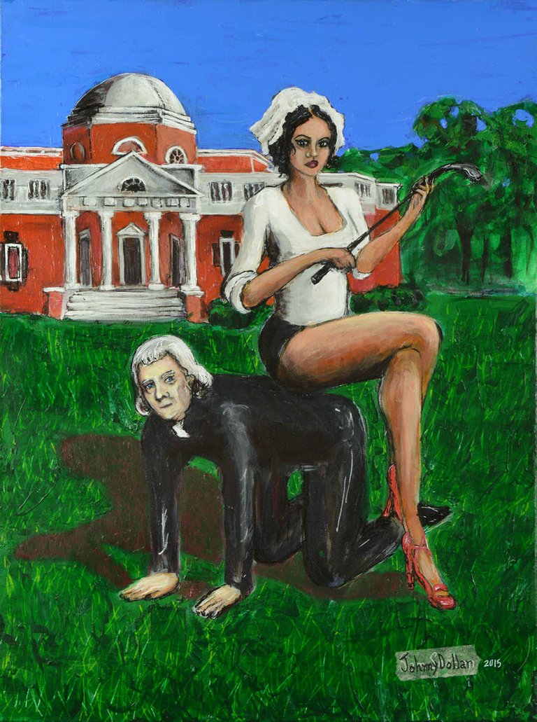 This painting depicts Thomas Jefferson and Sally Hemings with Monticello in the Background