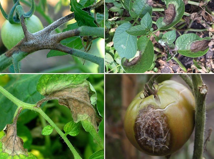 When the late blight occurs, the plants often die in the short term. The disease can occur in the seedling stage and the adult stage. In the seedling stage, the leaves are dark green water-stained lesions, and the lesions spread from the leaves to the main stem, causing the stems to become thin and dark brown, causing the seedlings to wilt or folding.