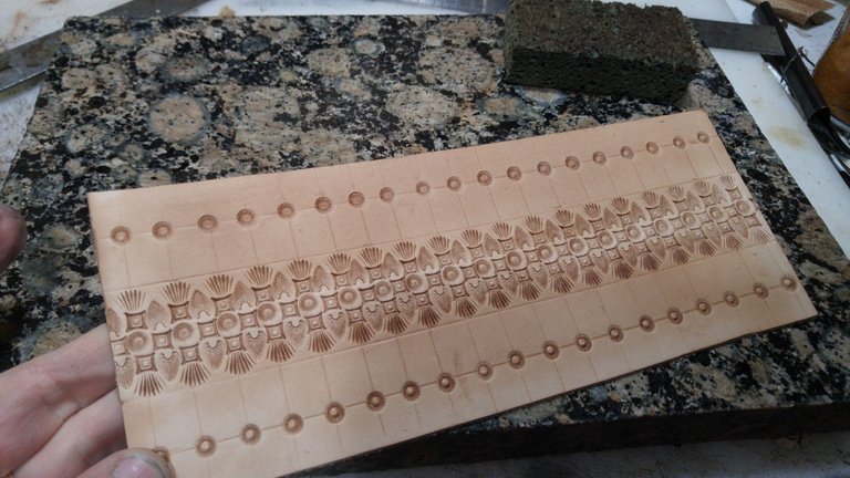 Here is another Leather Art Photo Blog where I show you "how I did that." This one does not need a lot of explanation as I am going to let you look over my shoulder while I tool and finish a wallet with one of my original geometric designs.