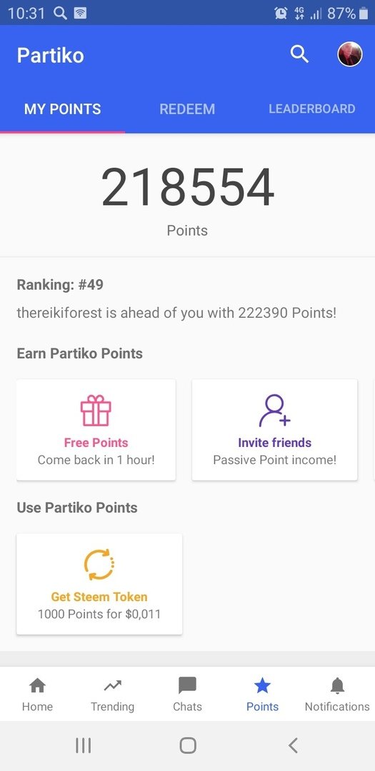 Мой рейтинг в Partiko - 218554 очков и 49 место в общем списке пользователей. За два дня поднялся на одно место)