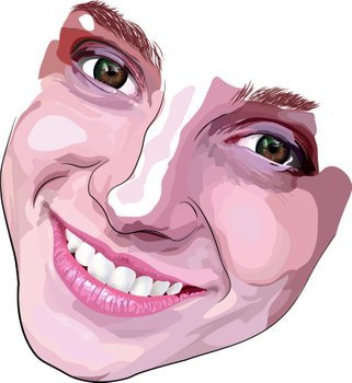 Aquí podemos apreciar la sonrisa ya difuminada y trabajada y las cejas hechas con un pincel especial que creé para simular el cabello.