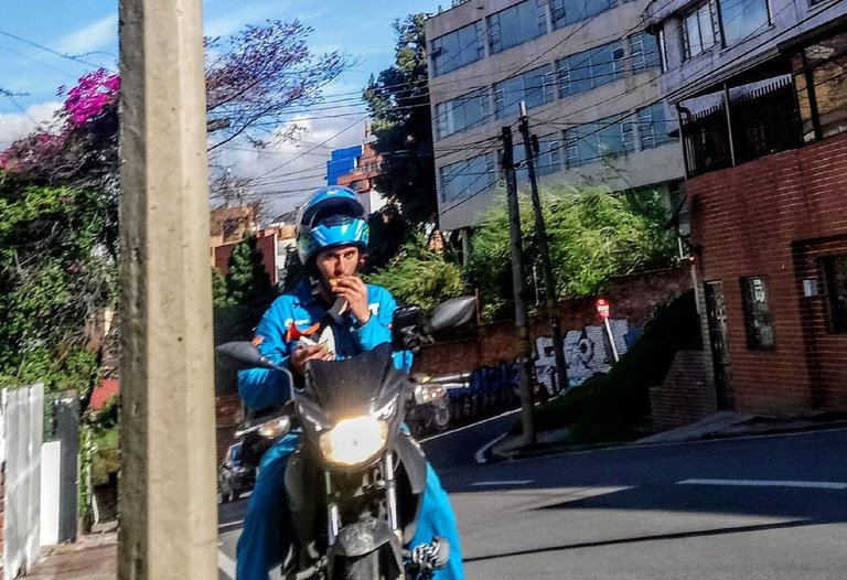 Es sábado a las 8 am y este trabajador se dispuso a desayunar en la calle en su vehículo. Lo que nos señala no sólo la falta de tiempo sino las precarias condiciones de su labor.