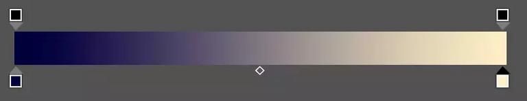 回到这个界面,我们会发现照片的“公式”是从最暗到最亮,颜色被替换成深蓝紫到暖黄色,渐变过程非常均匀,在色条下面中央位置有一个空心菱形,把鼠标放在这上面拖动,可以更改渐变的幅度,比如现在我把它向左拖动。