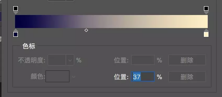 此时要注意,为了让画面自然,新选择的颜色的亮度(注意!是颜色的亮度)应该跟原来颜色差不多,要不然“跳跃过大”,看上去就会十分辣眼睛。然后我双击色带右下方的白色色标,选择一个偏暖的黄色(# fbefc6),这样就制造了暗部偏蓝紫、亮部偏橘黄的效果。