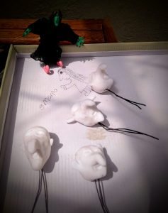 Tenía guardada un poco de porcelana fría (porcelanicrón), moldearla es fácil, es como plastilina, sin embargo, esta masa se pone rígida con el pasar de las horas, por el contacto con el aire, por lo que hay que trabajar rápido con ella y dejarla secar.