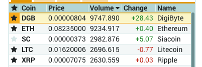 I've been making 2-4% per ride this weekend on Digibyte- it's now exceeded Etheroum's volume on Poloniex anyways- haven't checked elsewhere. So if you're looking for a coin to do a little day trading on today you may like Digibyte's behavior.