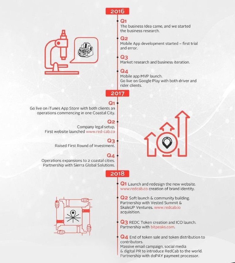 The RedCab LLC team has seen a clear opportunity in the transportation industry for its unique business model to balance business objectives and customer needs, backed by a strong technical platform. Blockchain technology is regarded as the backbone of this business model from providing secure transactions and quick contracts; it perfectly blends with our business model to deliver a world of decentralized managed and managed transport solutions to people who are ready to serve individuals and support the business.
