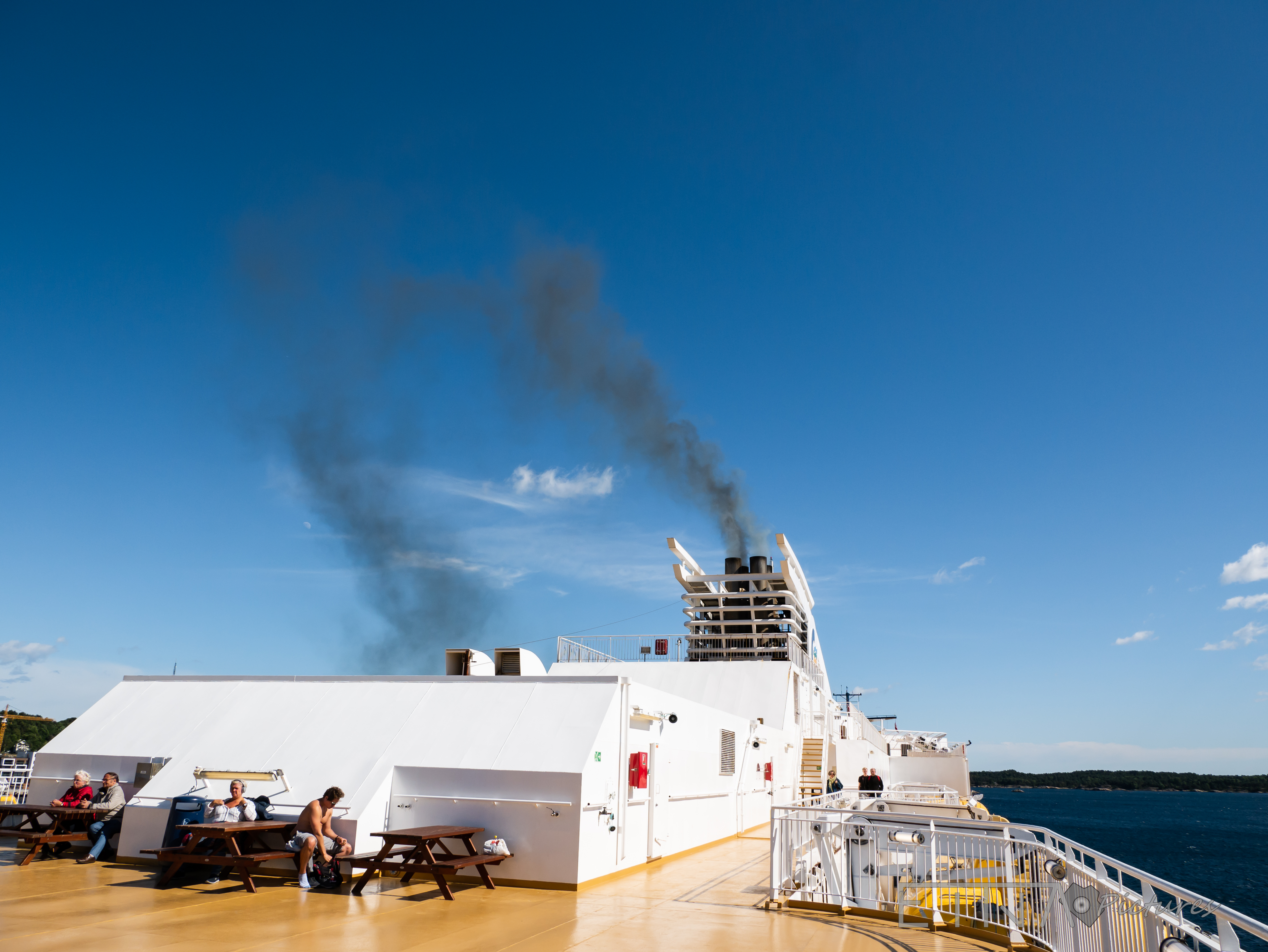 Klar haben sie das so ein Schiff brauch sehr viel Strom. Klimaanlage, Beleuchtung, Bordcomputer und vieles mehr. Alles Notwendige Systeme und so kommt es das eine blau-weiße Abgaswolke in der Luft hängt und es ist nicht nur in einen Fjord so, es sind mehrere, einige davon sind UNESCO-Weltnaturerbe wie der Geirangerfjord (wo zu Hauptsession bis zu 5 Kreuzfahrtschiffe liegen)