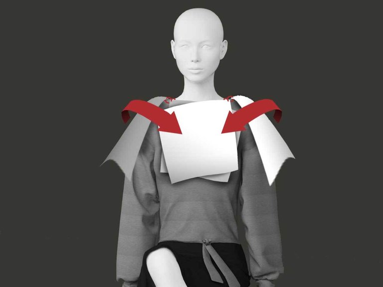 Man setzt sich vor den Spielgel und legt sich die 2 Tücher über die Schulter - Dekolletee