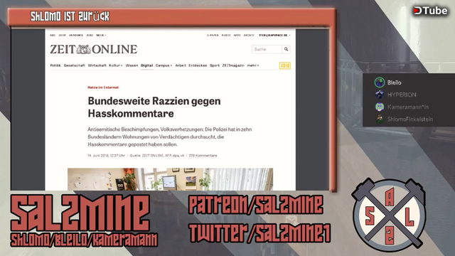 Nach langer Abwesenheit ist es nun wieder soweit: Zeit für die Salzmine. Shlomo klärt auf wo er die letzte Zeit gesteckt hat und Kameramann und Hyperion reden über ihre Differenzen beim Thema "Frauen in der Politik".