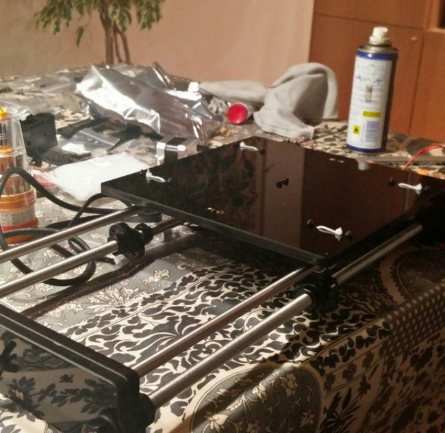 Heizbett befestigt, die Achsen schlittern fröhlich vor sich hin. Fehlen noch die Extruder, die Stromversorgung sowie Verkabelung.