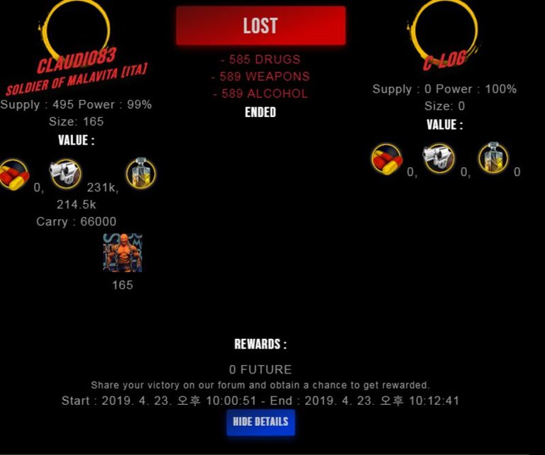 Check my latest fight ! claudio83 vs c-logc-log (43)in #drugwars-fight • 7 years ago #gaming #fight #dw