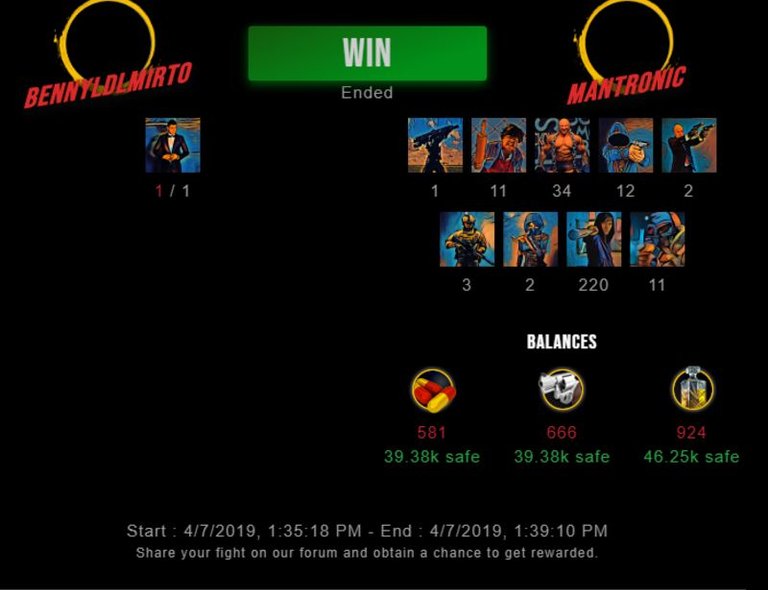 Check my latest fight ! bennyldlmirto vs mantronicmantronic (45)in #drugwars-fight • 7 years ago #gaming #fight #dw