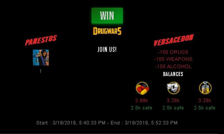 Check my latest fight ! panestos vs versacedonpanestos (28)in #drugwars-fight • 7 years ago #gaming #fight #dw