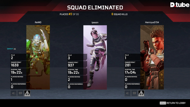 Apex Legends Ranked | Playing with Wraith legend!lpessin (61)in #dtube • 6 years ago Hey guys! Today I'm with Wraith legend, she is very good both in defense and attack! We manage to get in second place which is not bad at all! ▶️ DTube #battle #steemace
