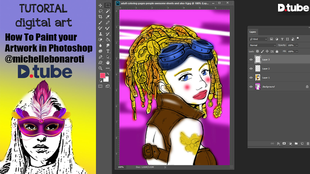 in this video you can watch all the process of coloring , tutorial of how to paint your artwork in photoshop .