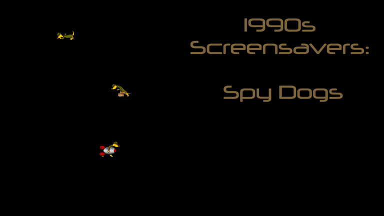 Yellow dogs move across the screen doing spy related things. Like using an dish antenna, or moving top secret boxes, bombs or sniffing the ground as they walk. These yellow dogs are usually seen three at a time on the screen. And spy music is being played in the background as they move throughout the screensaver.