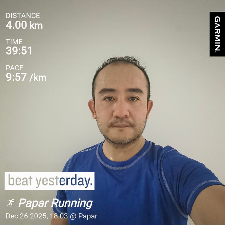 degree celsius in my hometown. Our country is in monsoon season now and I ran 4km at easy pace in the neighbourhood near my place and called it a day.