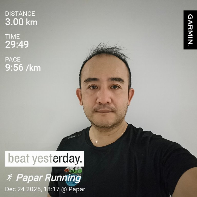degree celsius in my hometown. Our country is in monsoon season now and I ran 3km at easy pace in the neighbourhood near my place and called it a day.