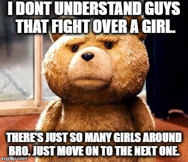 And halfway through the fight, the girl gets bored and makes her way to the end of the bar to the lonely guy, so she can get his hopes up, before dashing them with the "You're such a good friend" brush off.