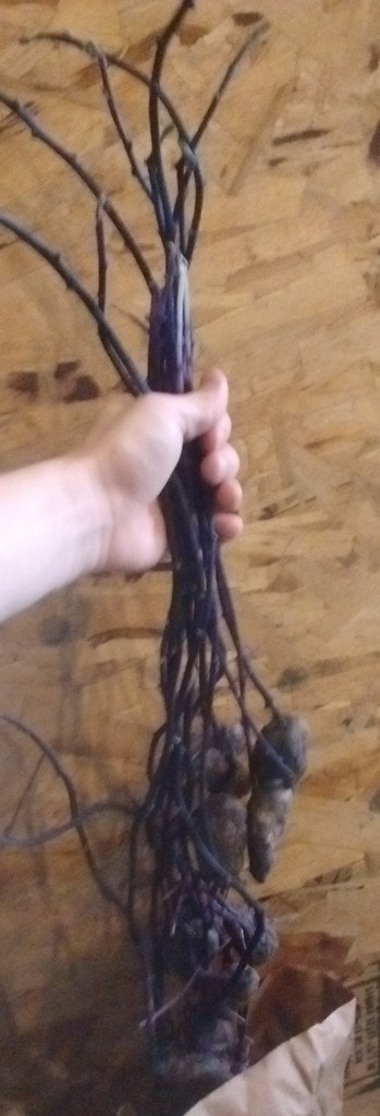 The storage spot for my potatoes happened to be along a outside wall. When the season warmed so did the storage spot. This caused my potatoes to sprout. Whoops! I’ll have to find a new storage spot or eat them faster next winter.
