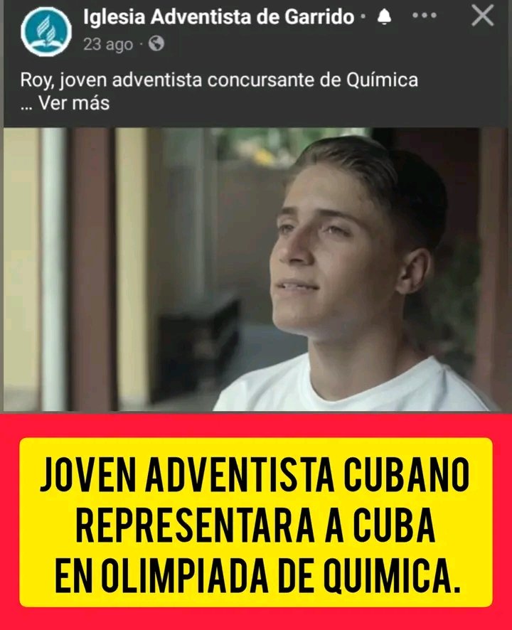 Roy González, un joven adventista de 17 años que estudia en el IPVCE Máximo Gómez de la Ciudad de los Tinajones, Camagüey, representará a Cuba en la XXVIII Olimpiada Iberoamericana de Química en Sarapiquí, Costa Rica, del 9 al 14 de octubre.