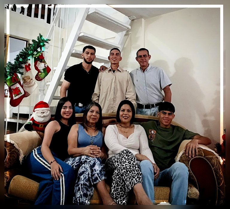 Aquí pueden observar como la casa está llena de adornos y una que otras chuchería pero sobre todo de esas caras alegres y estas sonrisas que a pesar de todo no hace reconocer que seguimos unidos y con salud por lo que doy gracias infinitas al universo por cada uno de estos momentos hoy día esta fotografía son testimonio del amor familiar de la resistencia y de la dicha yo deseo que ustedes observar esta fotografía puedan sentir un poco de la calidad de nuestro hogar y que recuerden que mientras tengamos vida y a quienes amamos cerca lo tendremos absolutamente todo.