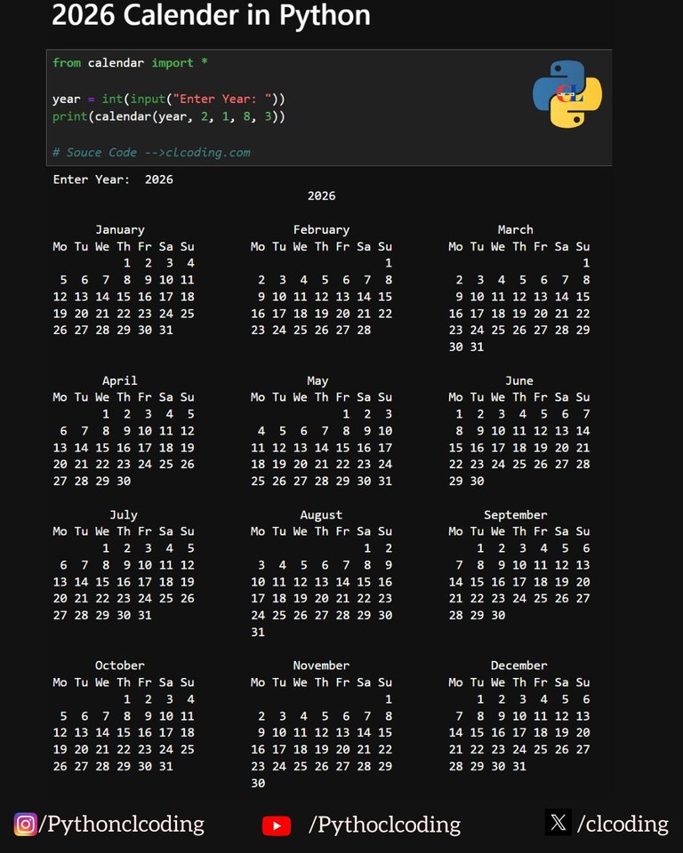 Get your 2026 calendar with #Python