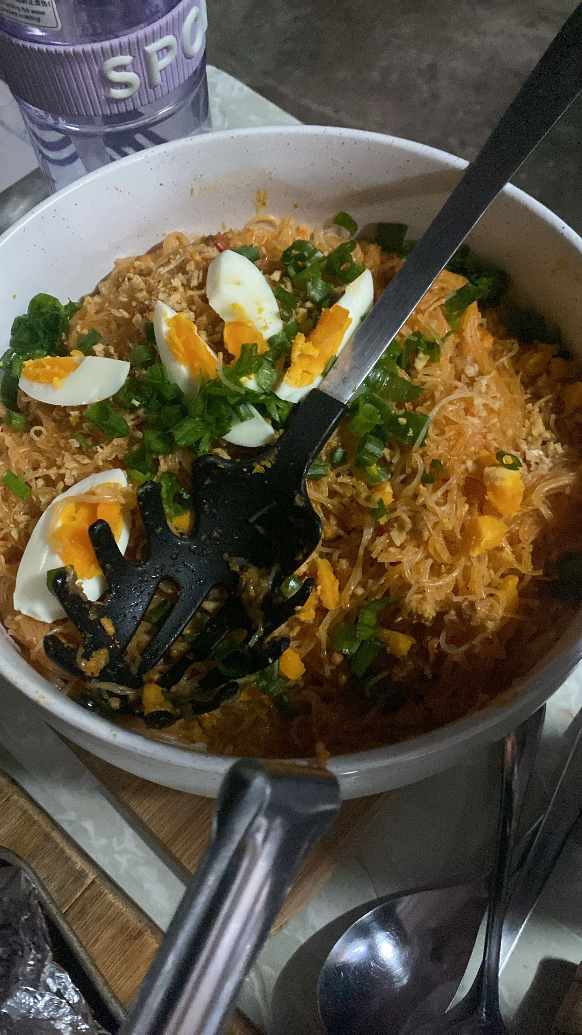 My cousin brought over some fresh chicken, so I whipped up palabok—a comforting Filipino favorite that always feels like a hug on a plate. For dessert? Something light and tropical: ripe mango slices layered over buttery biscuits. Simple, yes—but full of joy!