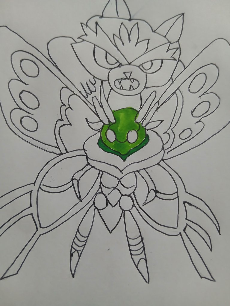 After completing the outline I have started to collect and I have started with face of noxic. And mostly green and orange and brown colour have been used in the whole fan art but there are some colours which are use a little lighter for example pink and pruple.