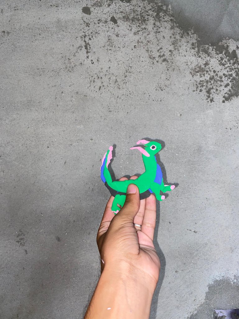 Now I used pink clay for it's horns and firy look. So again the clay was in liquid form. I was tired to handle it. So here I hard it and make it's horns and attached on tail.
