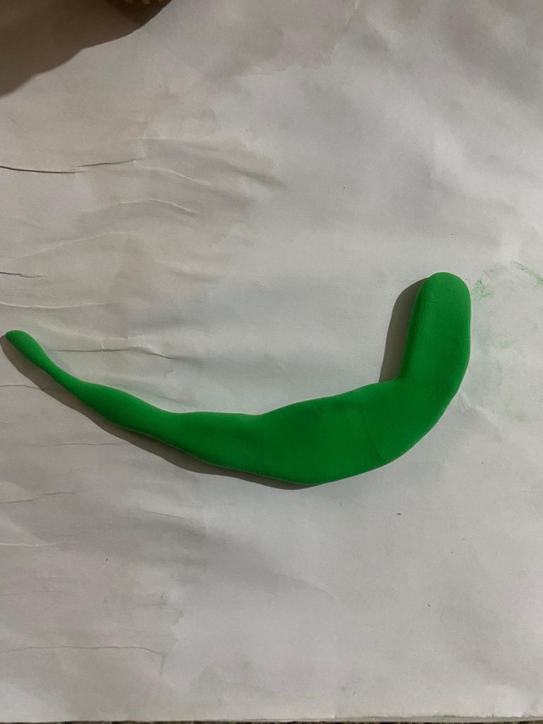 The process before starting was looking quite easy and simple. But when I started to make it, I realized that it was some how difficult. Because I was using molding clay after a long time. So first I took green clay and then make a long strip and then press it. After pressing it I give it a shape of curve 🪝.