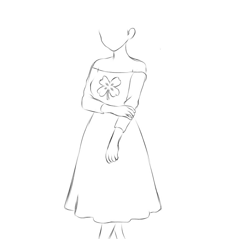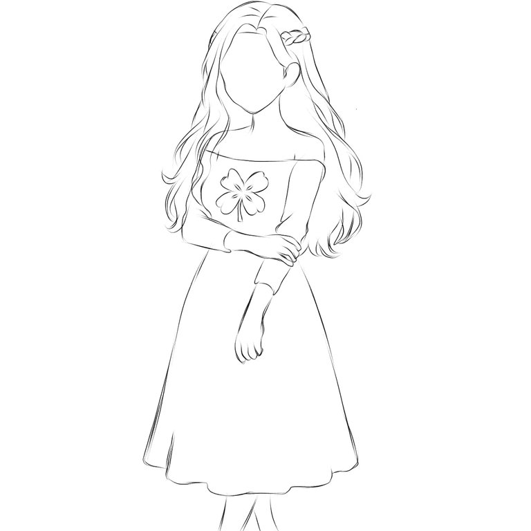 - First, I start outline from her upper body, including her arms, and shirt and face shape.