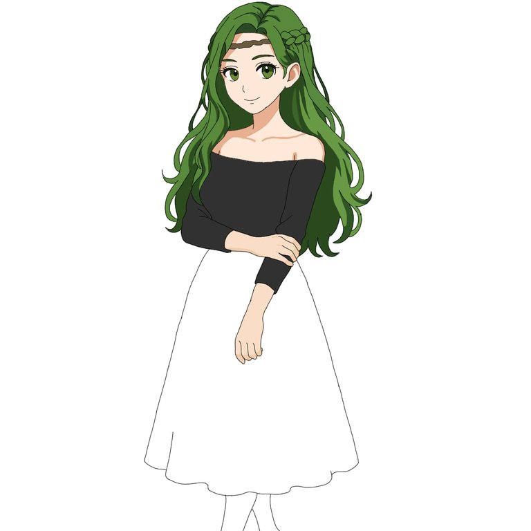 - Now it time to colour her clothes for which I use black and white colour. A black for her shirt shown in reference image, and white for her skirt.