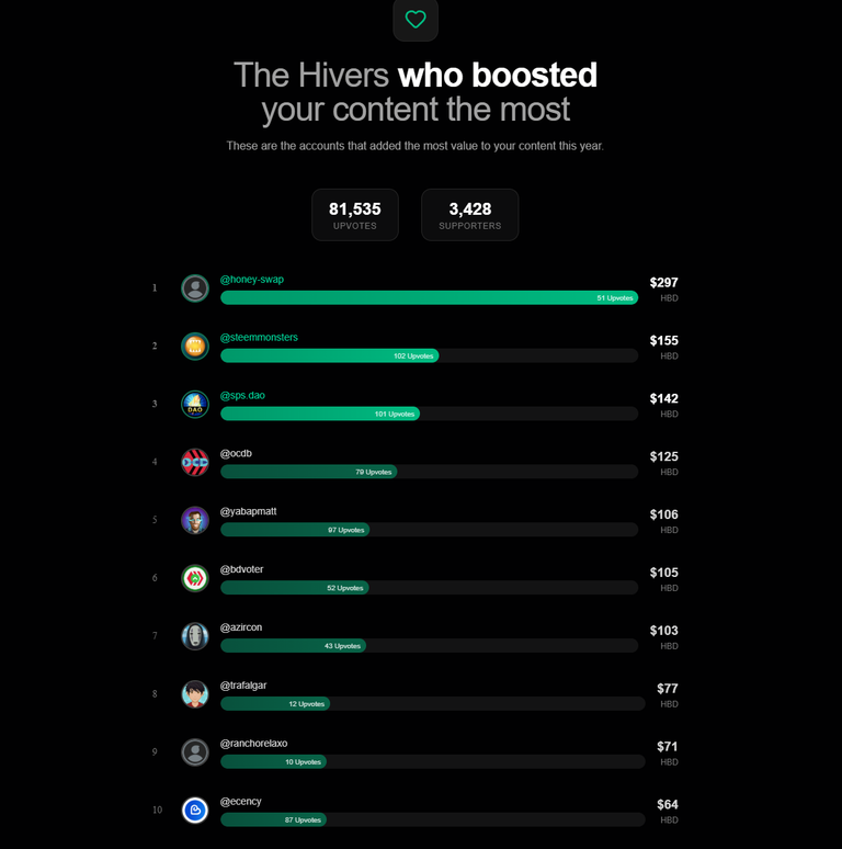 And here are the Hivers who boosted my content the most during 2025: