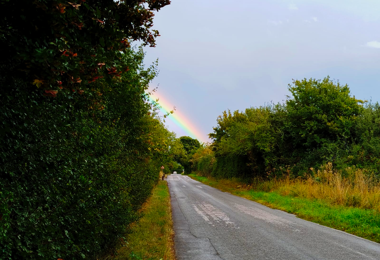 At the end of the road, a rainbow appeared, and it cheered me up while I was picking.