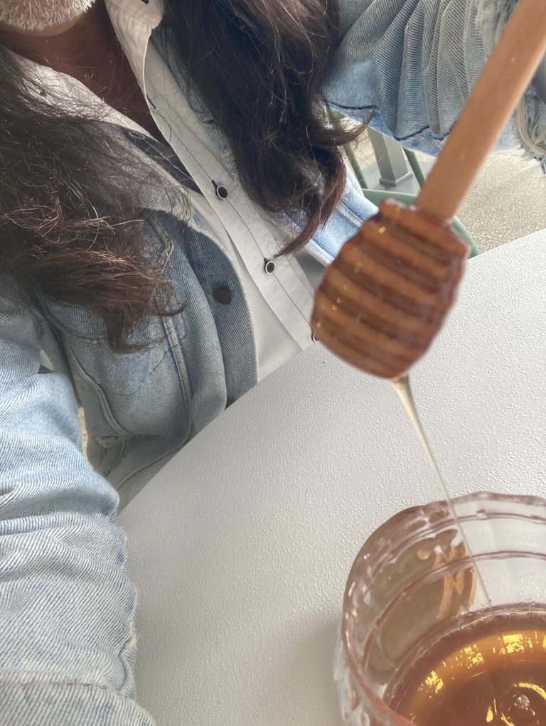 #Hive is back in my mind! Look. No sugar, as is typical in Cuba. The coffee comes with a glass jar, shaped like a beehive, filled with honey. Inside, another fantastic detail: a wooden piece that mimics the nature of bees, used to scoop the honey. This element perfectly complements what we're talking about and made me smile when I imagined writing these words.