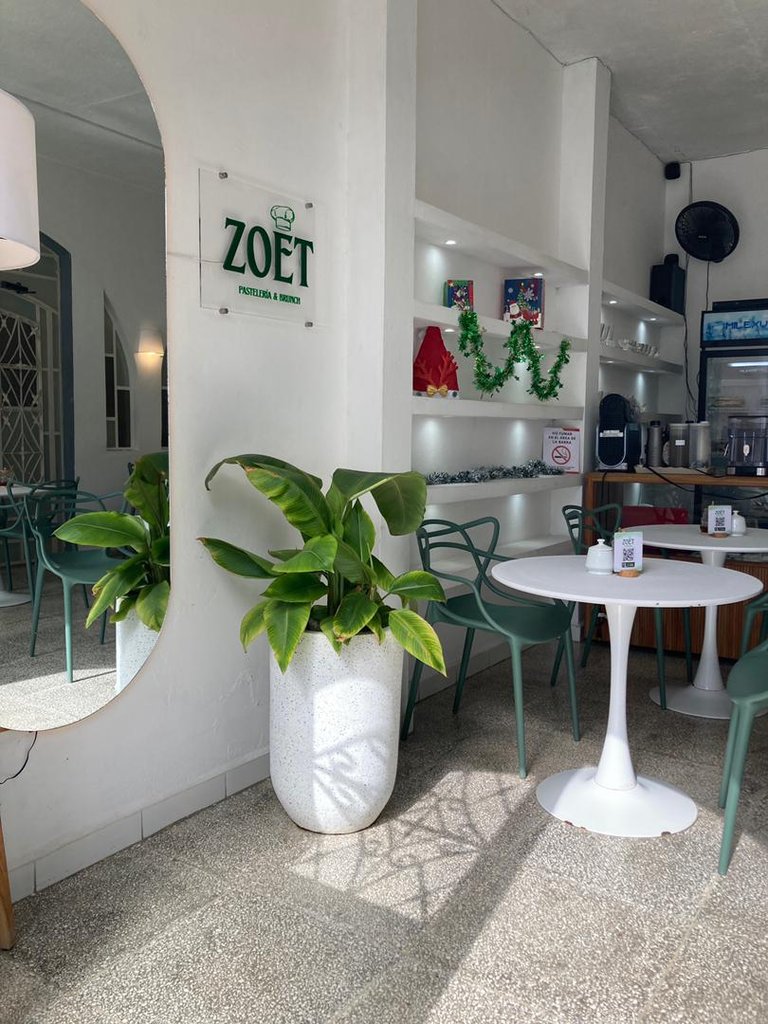Venía ayer precisamente de casa de mi hijo y me dirigía a otro sitio donde me esperaban. Mis ojos repararon en esta fachada y mi atención se detuvo. Zoet, una cafetería, con otras ofertas que me resultaron interesantes, hicieron posible que decidiera entrar, sentarme y disfrutar de lo novedoso para mí.