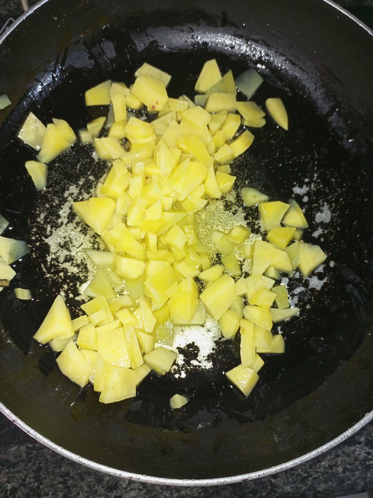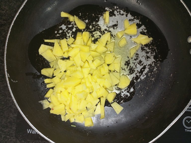 Step 2: Now we peeled the potato and cut it into small pieces.