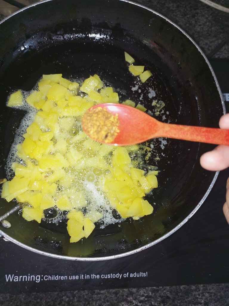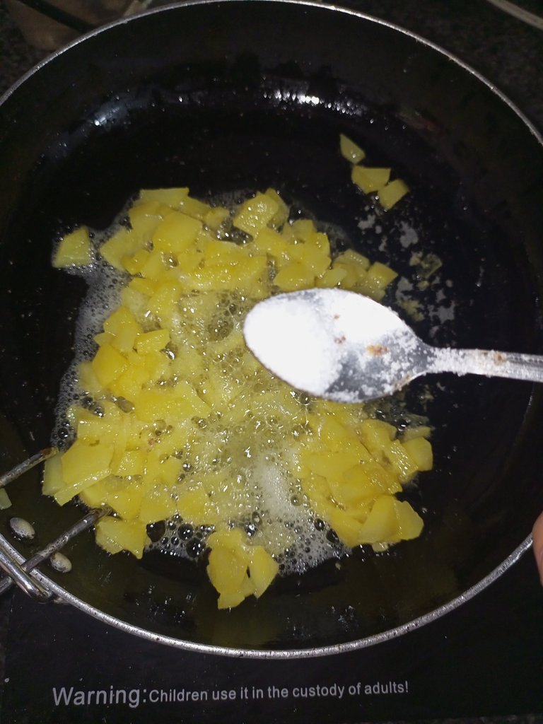 Step 5: When the potatoes become soft, we will add red chili powder and salt to them.