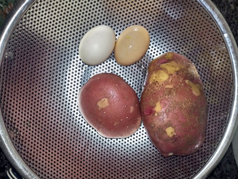 Step 1: First, we took two eggs and one potato.